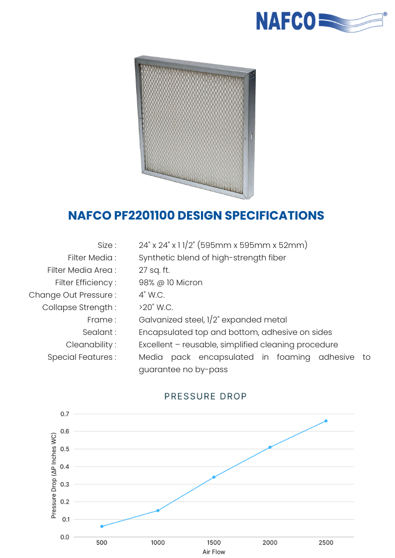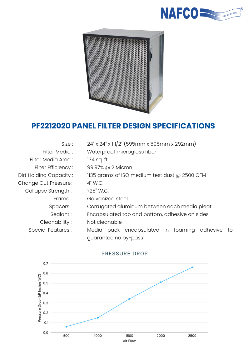 NAFCO® Panel Filters offers a reliable and no bypass solution to ensure that no contaminants can reduce the quality of your process air requirements. NAFCO® Panel Filters provides dependable ultra efficiency media for maximum protection of high speed rotating equipment and features continuous gaskets for no bypass guarantee.